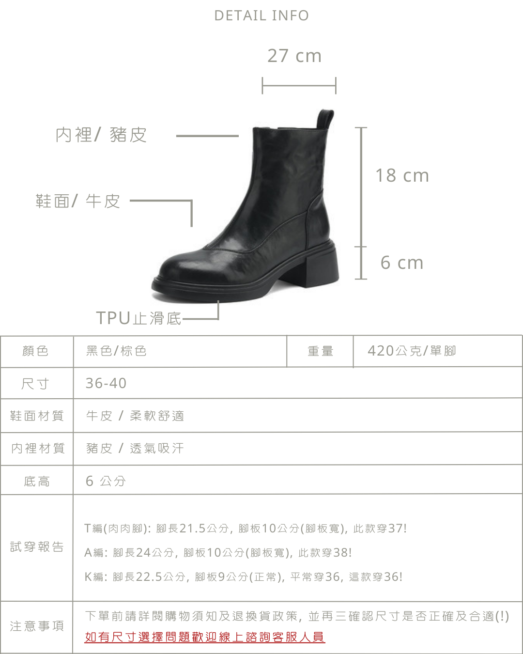 經典拼接粗跟短靴 -2色